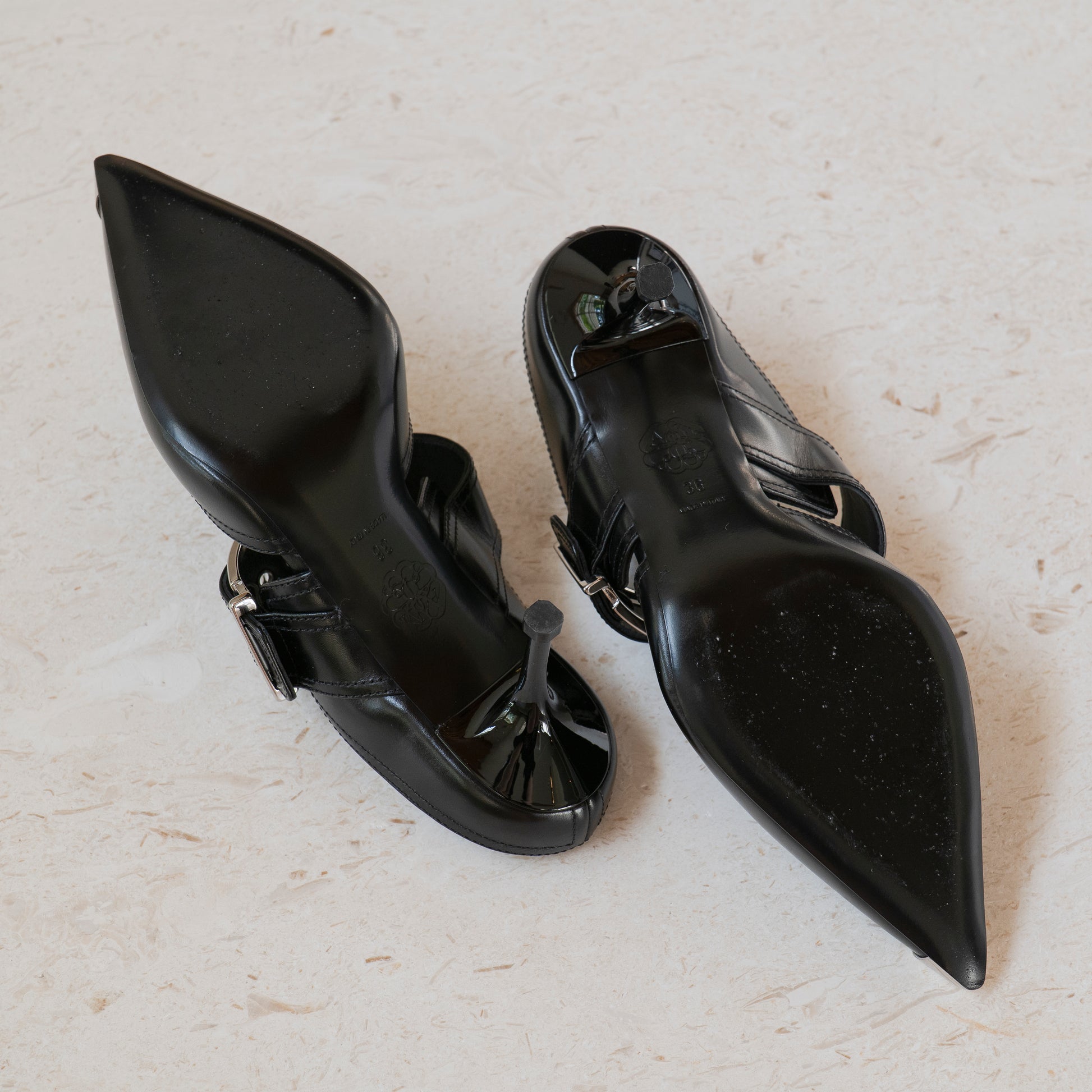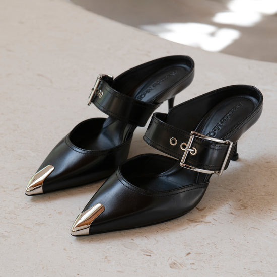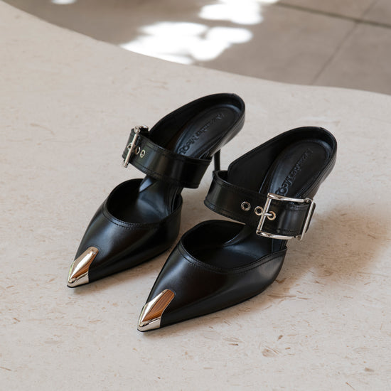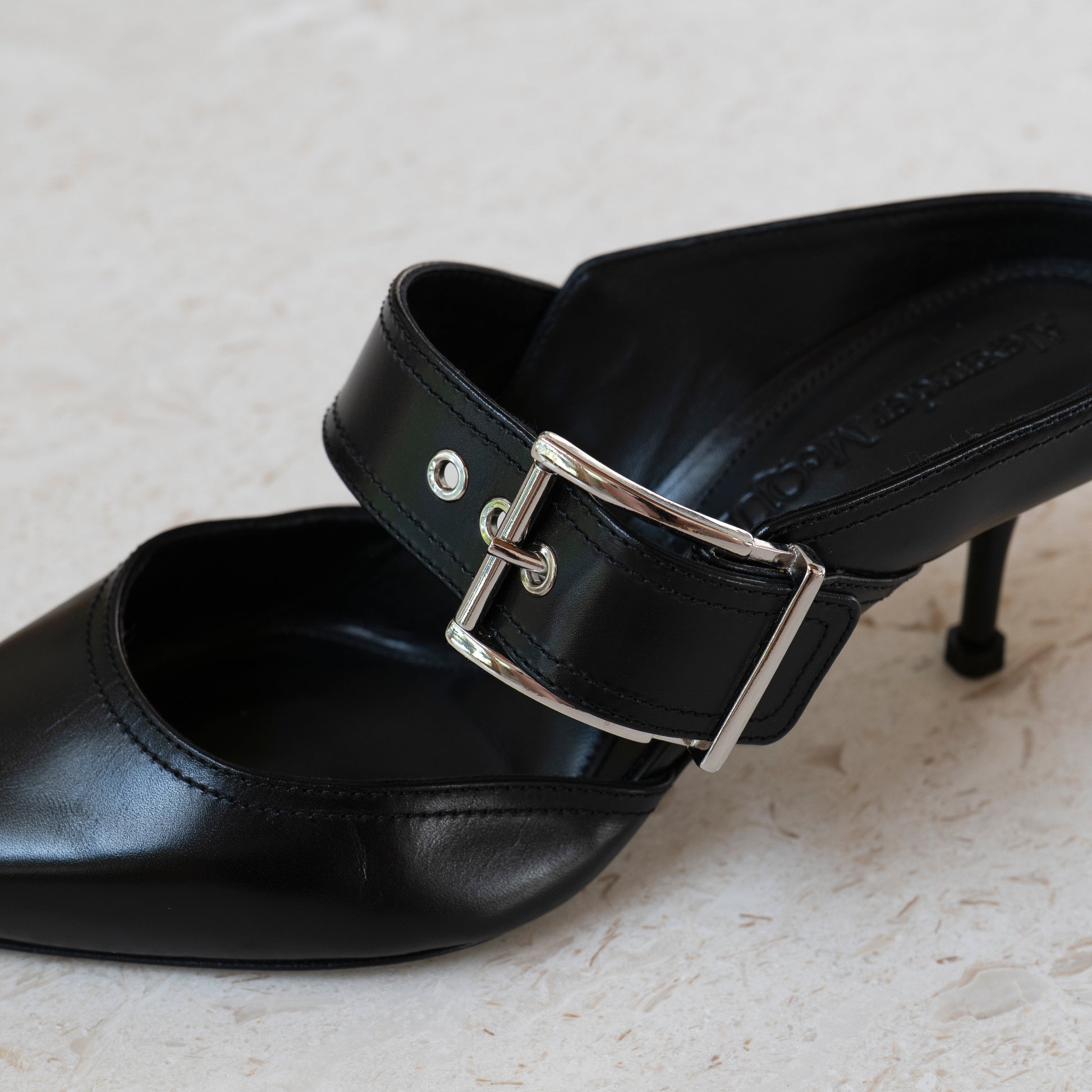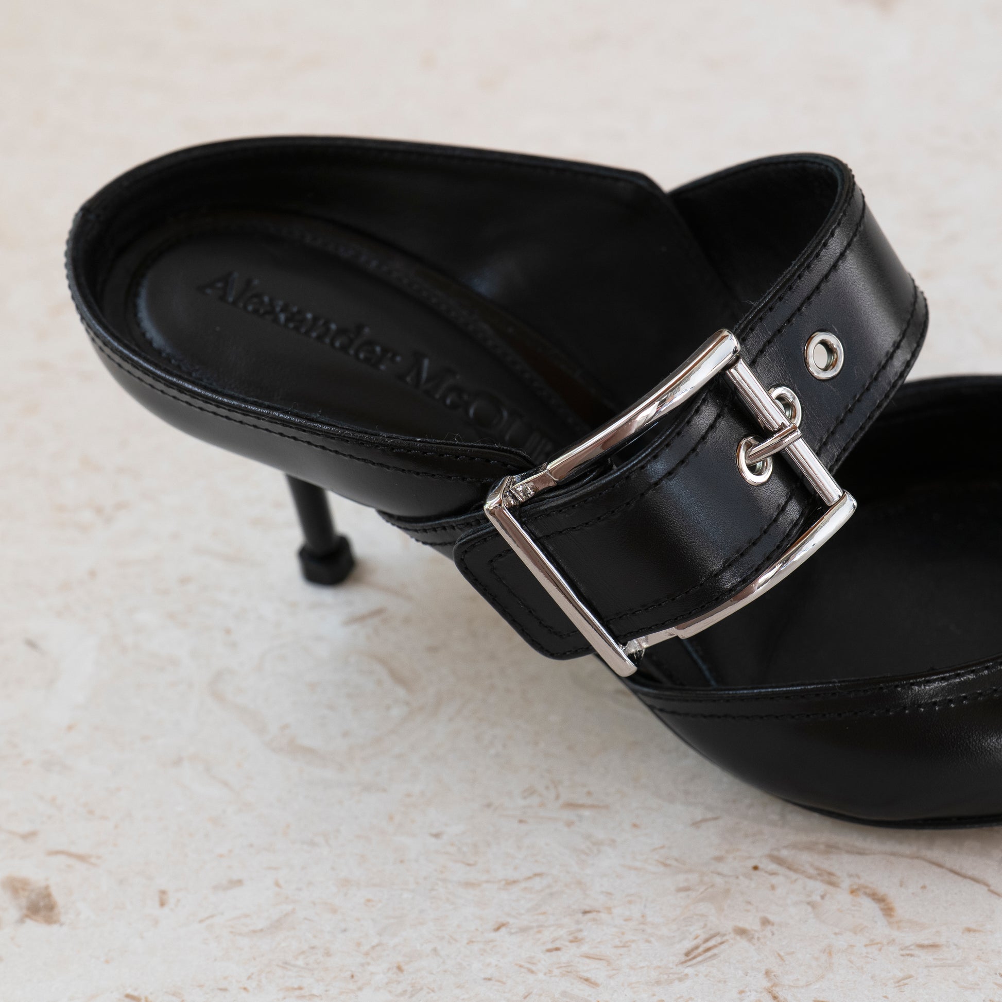 Alexander McQueen Punk Buckle Leather Mules Size 36