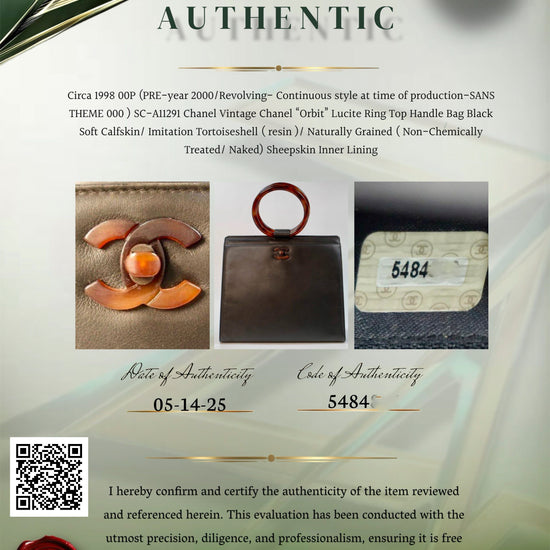 Preowned Chanel™ Vintage Black Calfskin Tortoiseshell Ring Handle Bag 1997-1999