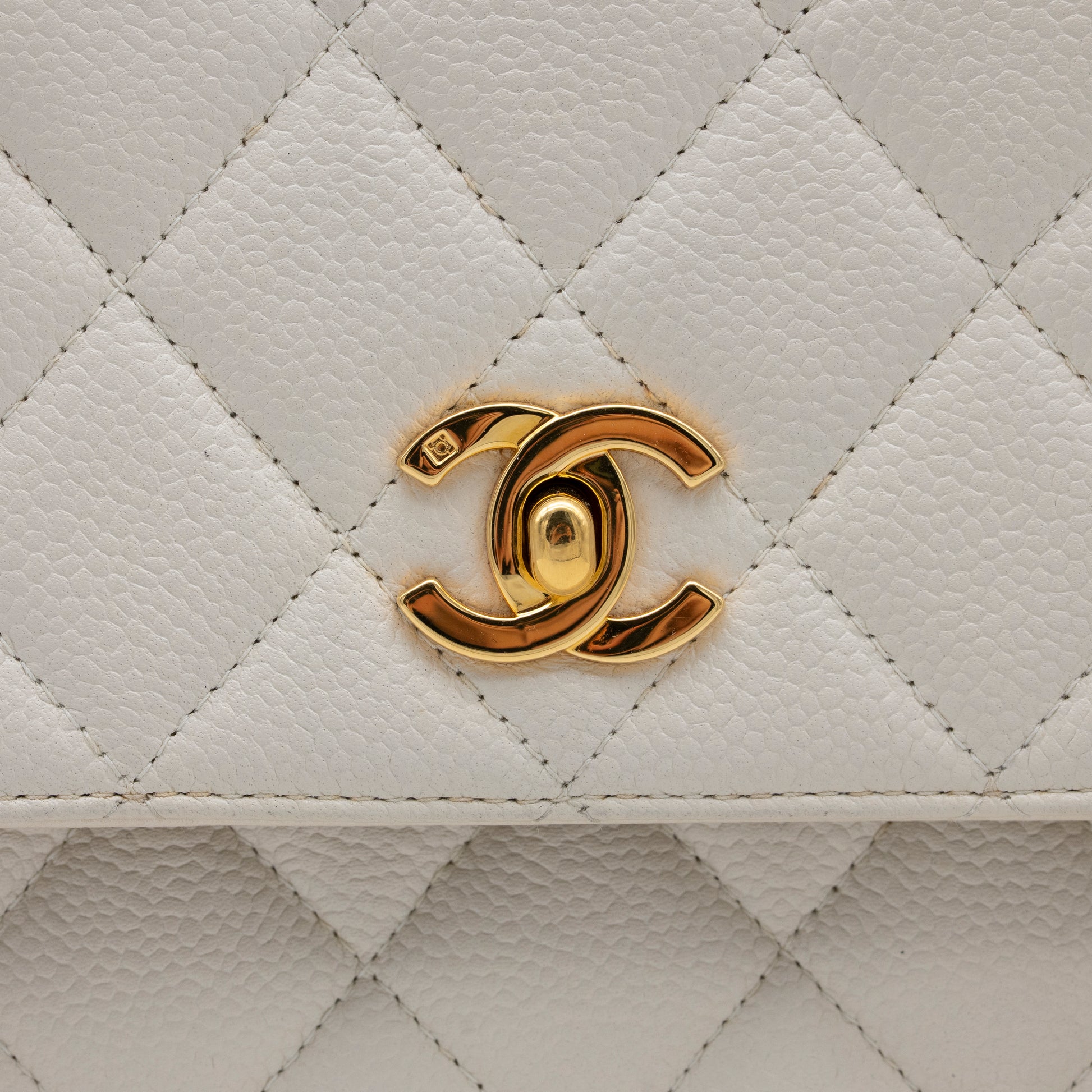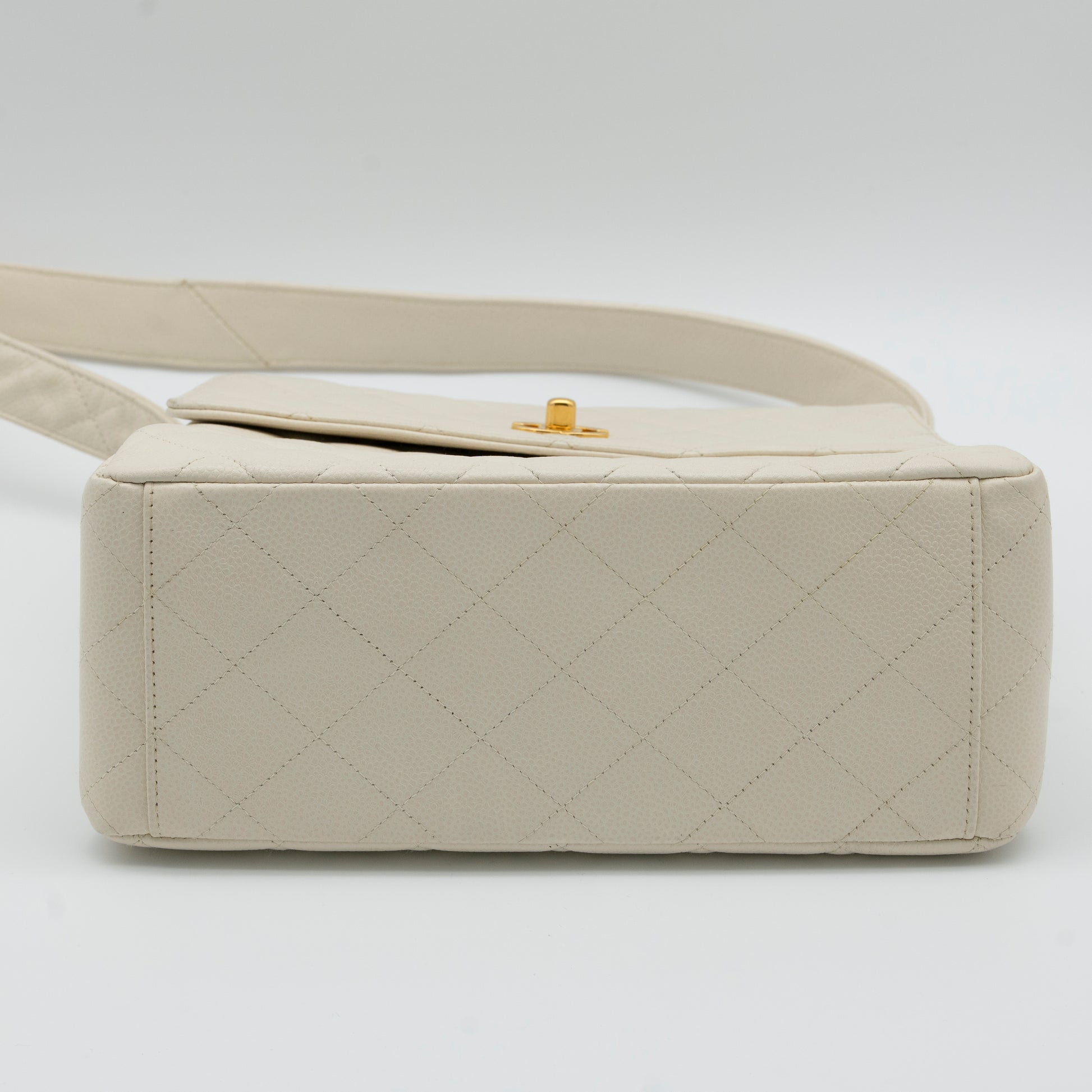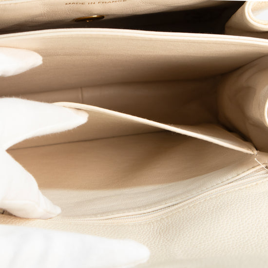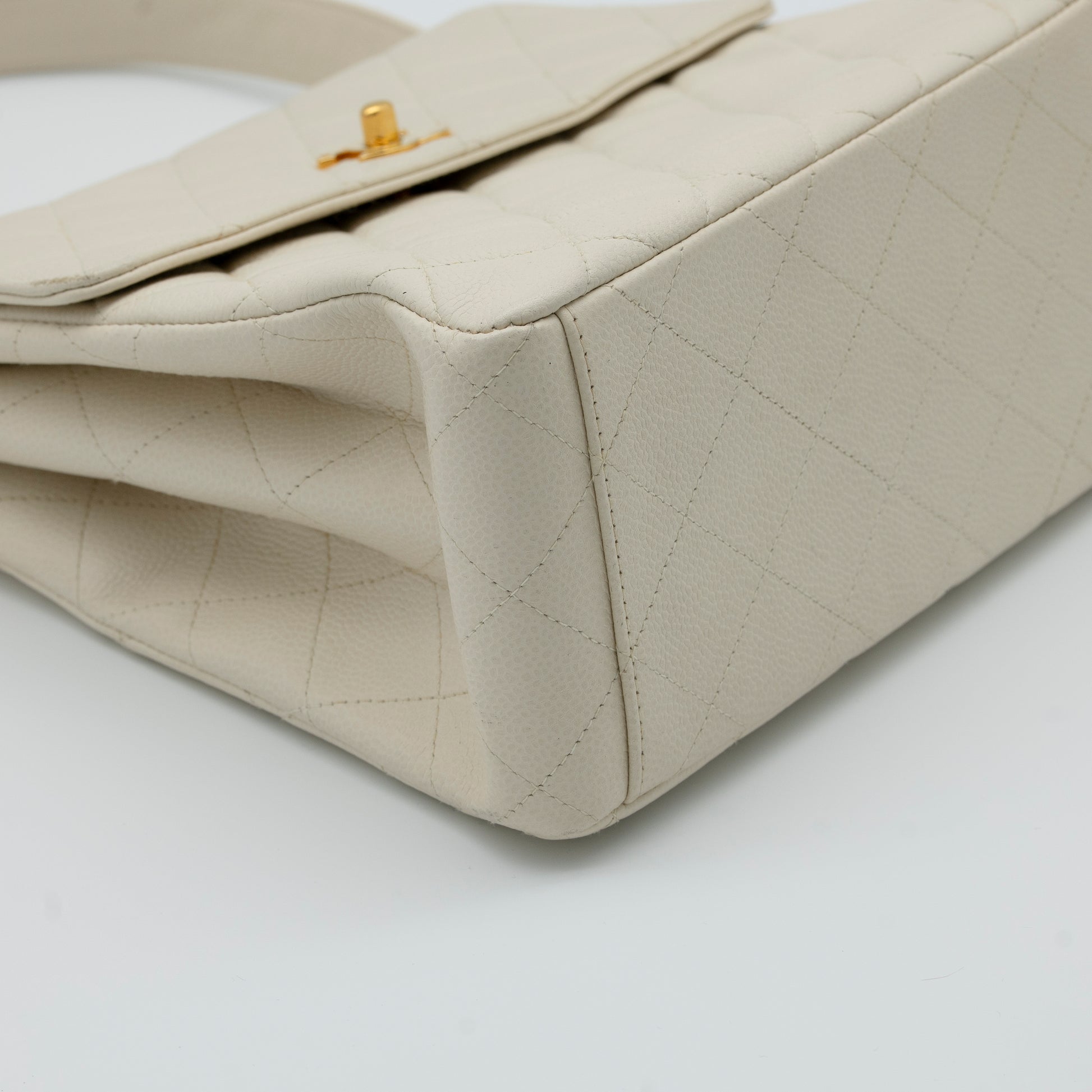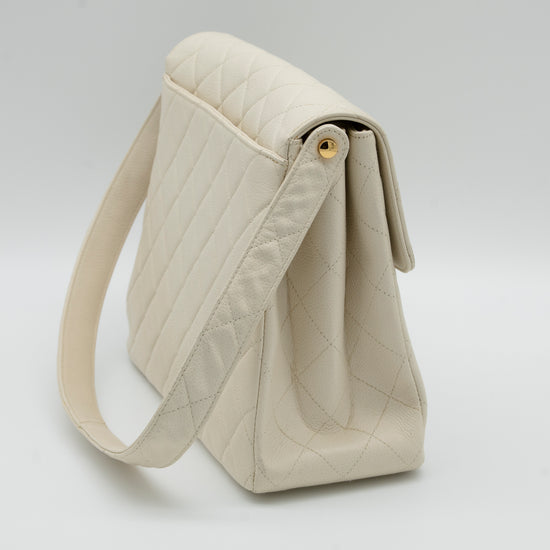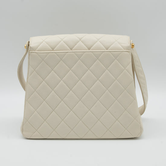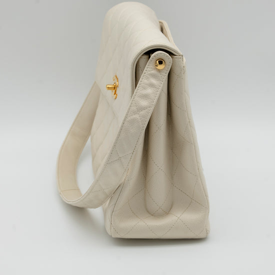 CHANEL Vintage Ivory Quilted Caviar CC Turn Lock Flap Bag 24K GHW