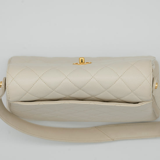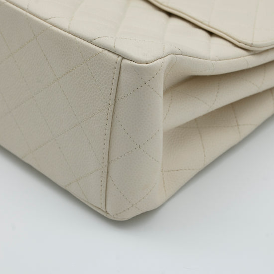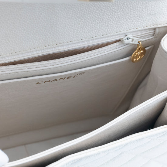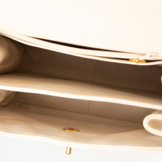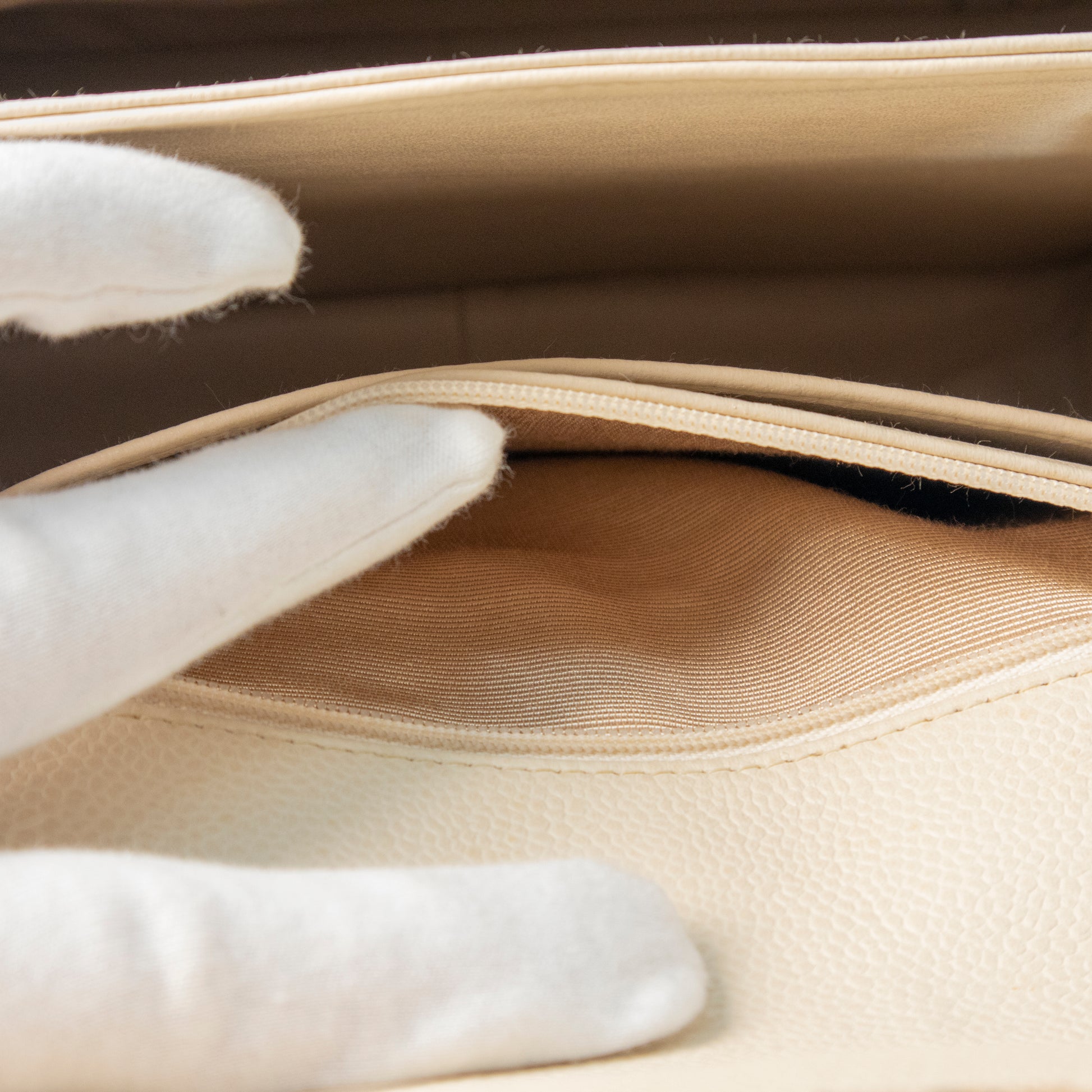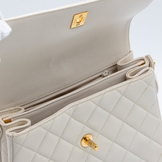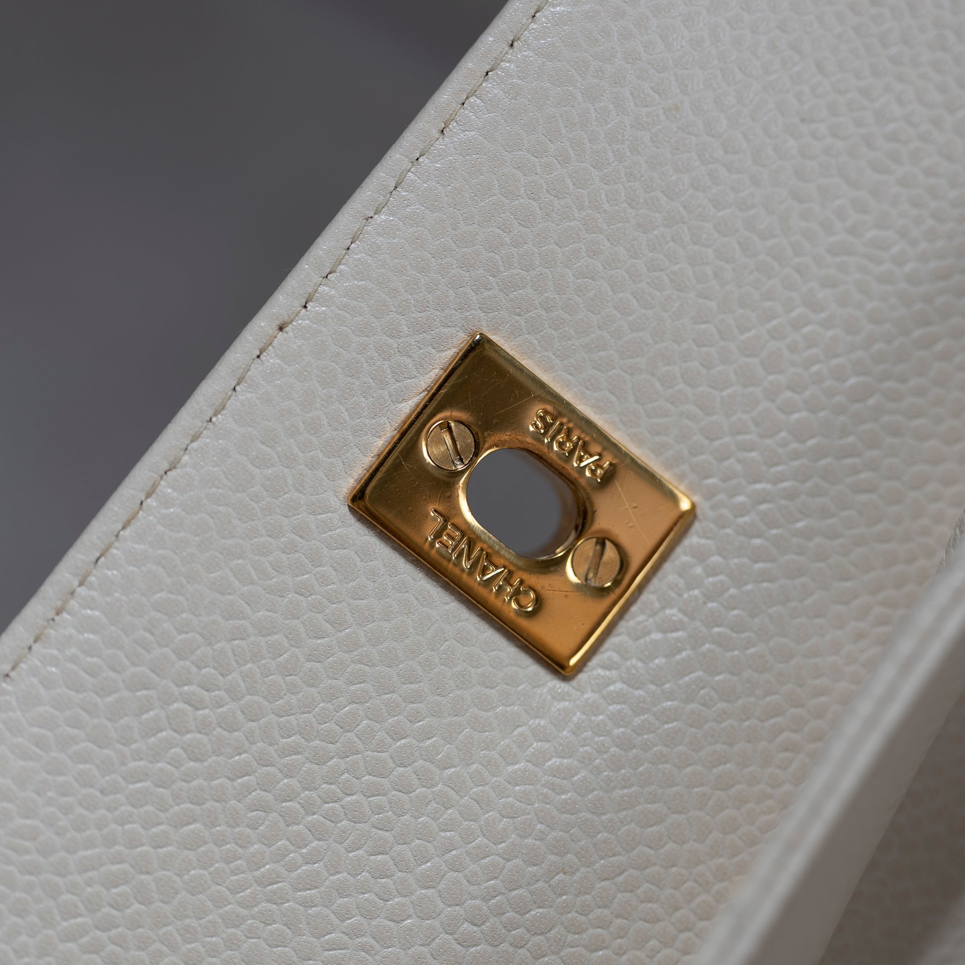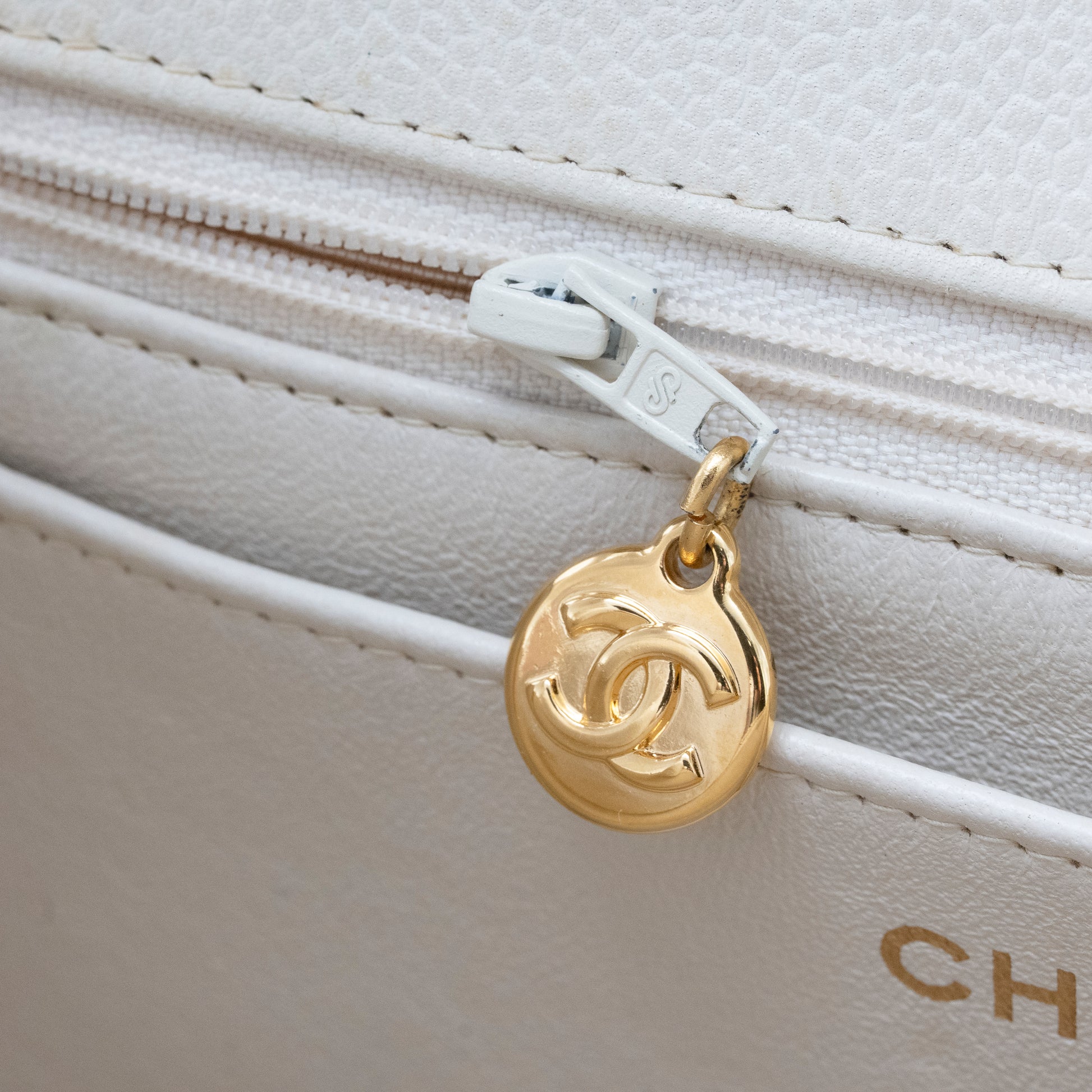 CHANEL Vintage Ivory Quilted Caviar CC Turn Lock Flap Bag 24K GHW