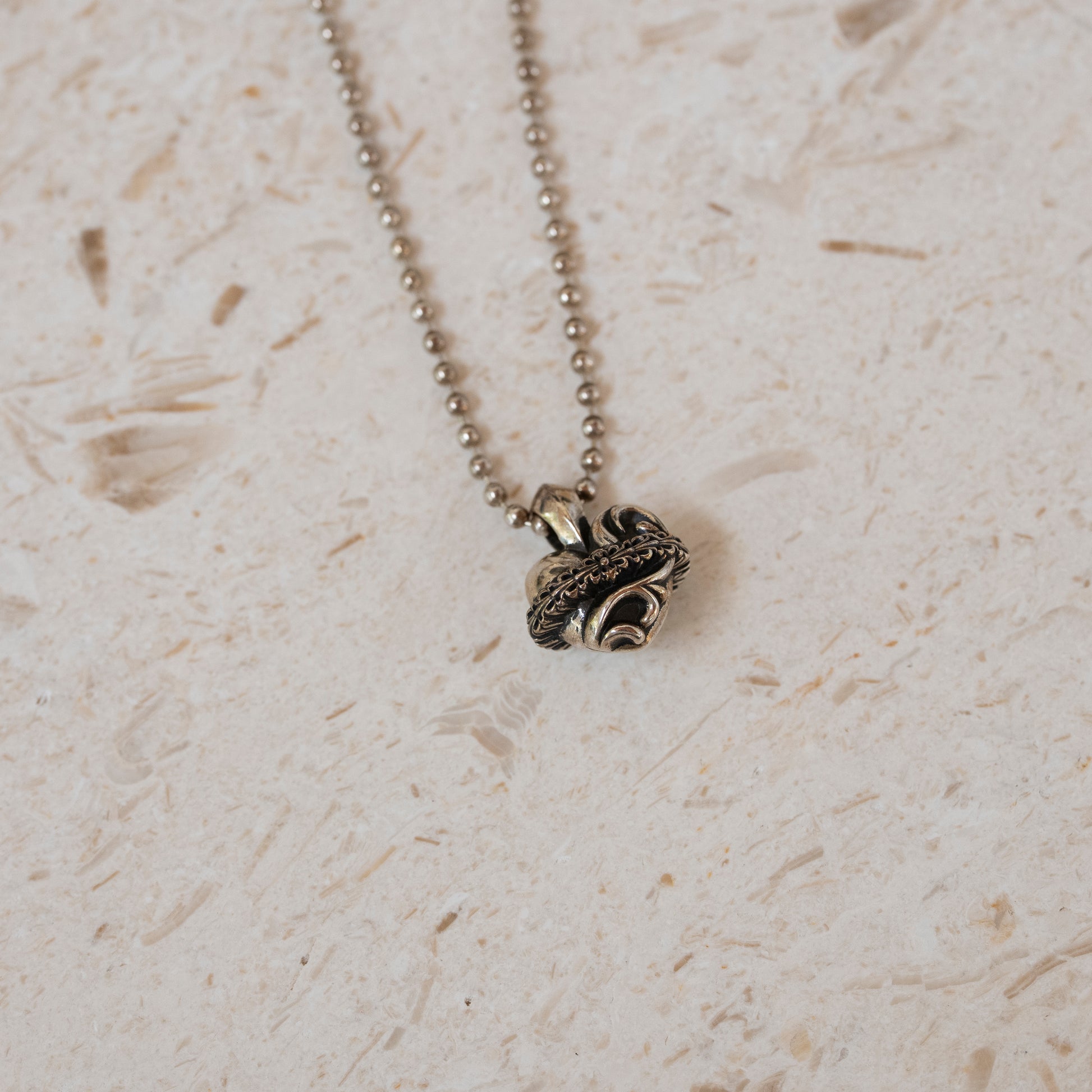 Chrome Hearts Heart Orbit Charm Pendant with Silver Ball Chain Necklace
