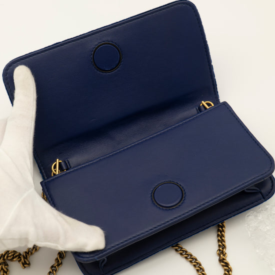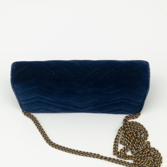 Gucci Velvet GG Marmont Mini Chain Flap Bag Blue
