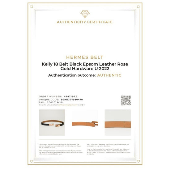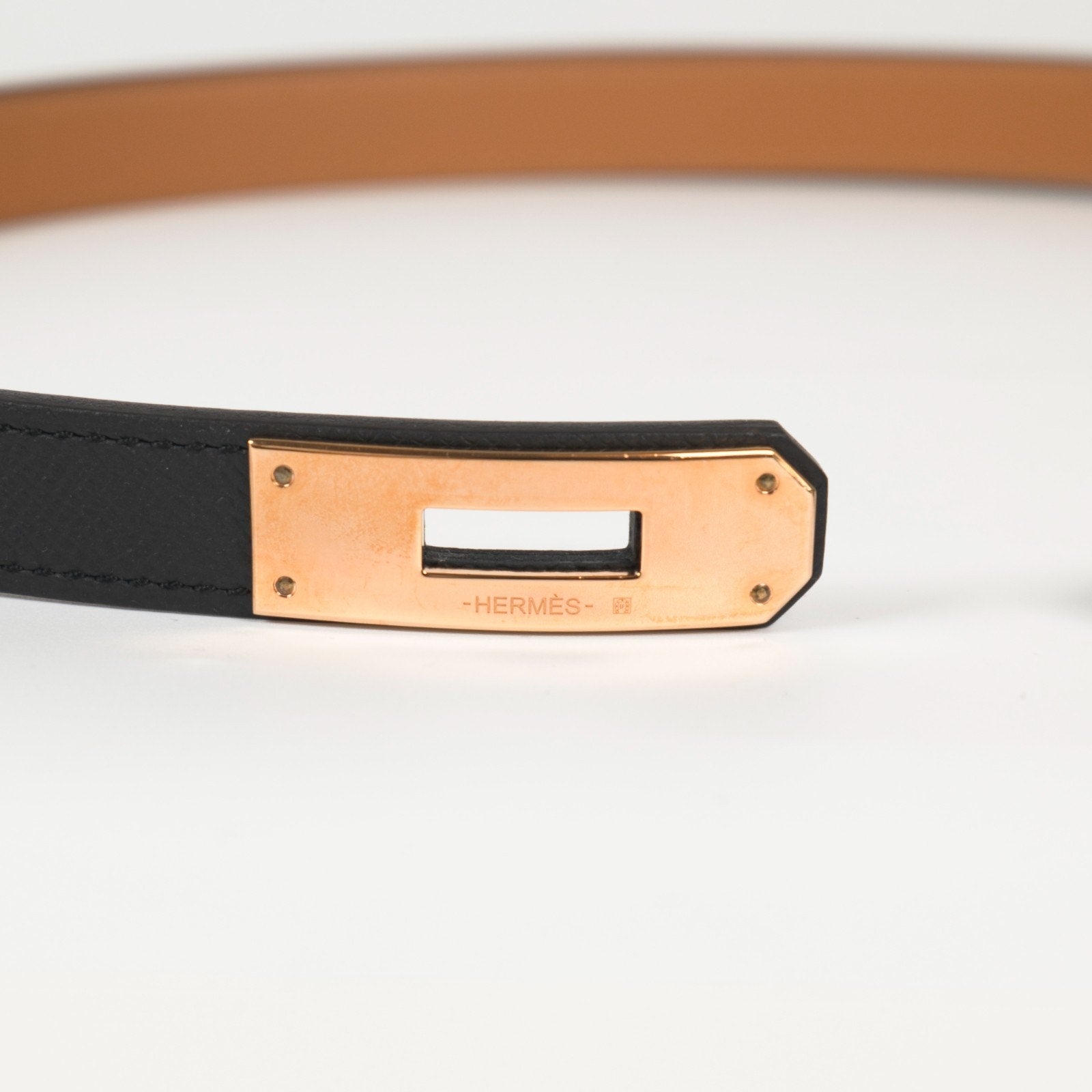 Hermès Kelly 18 Belt Black Epsom Leather Rose Gold Hardware U 2022