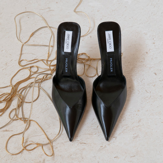 Jimmy Choo x Mugler Black Leather Chain Strap Pumps Size 37