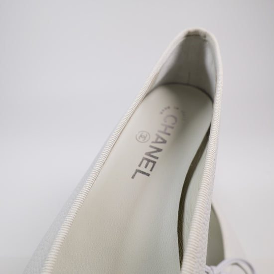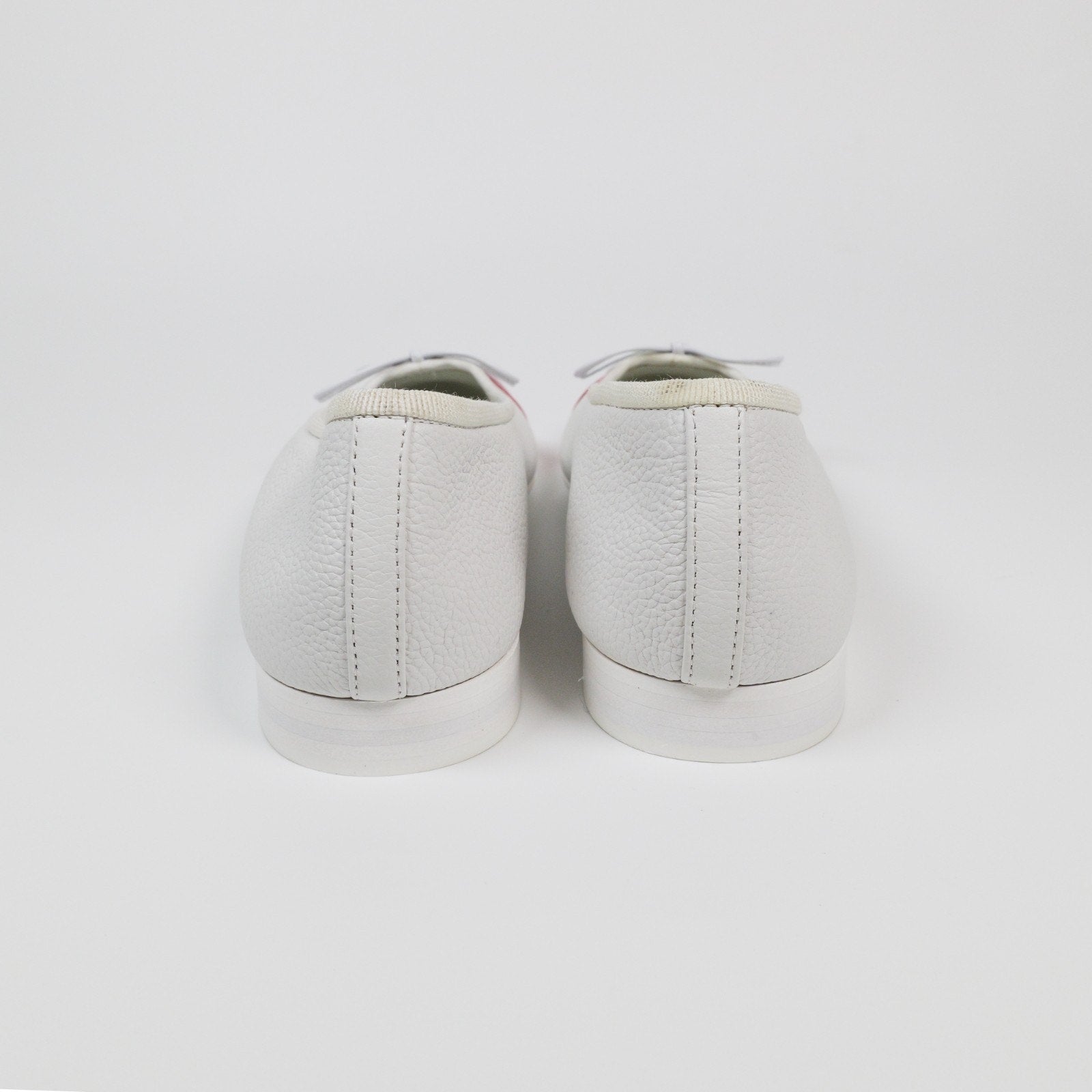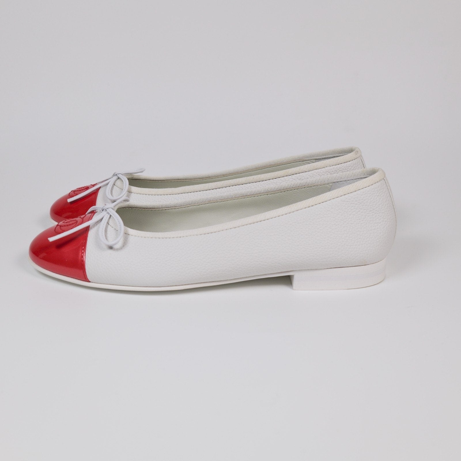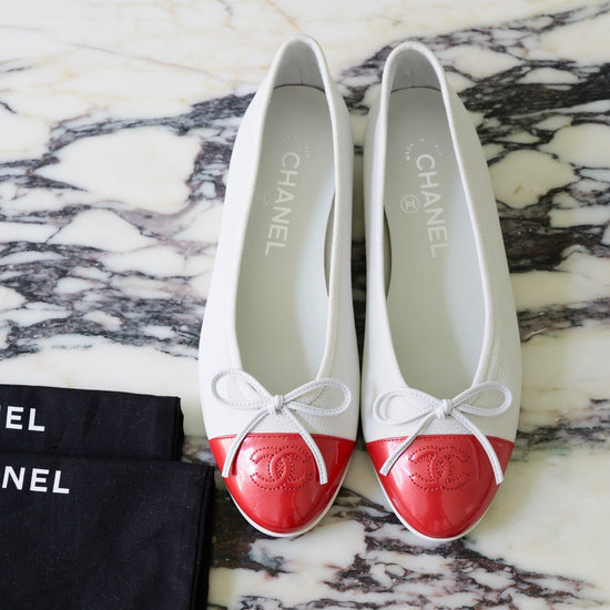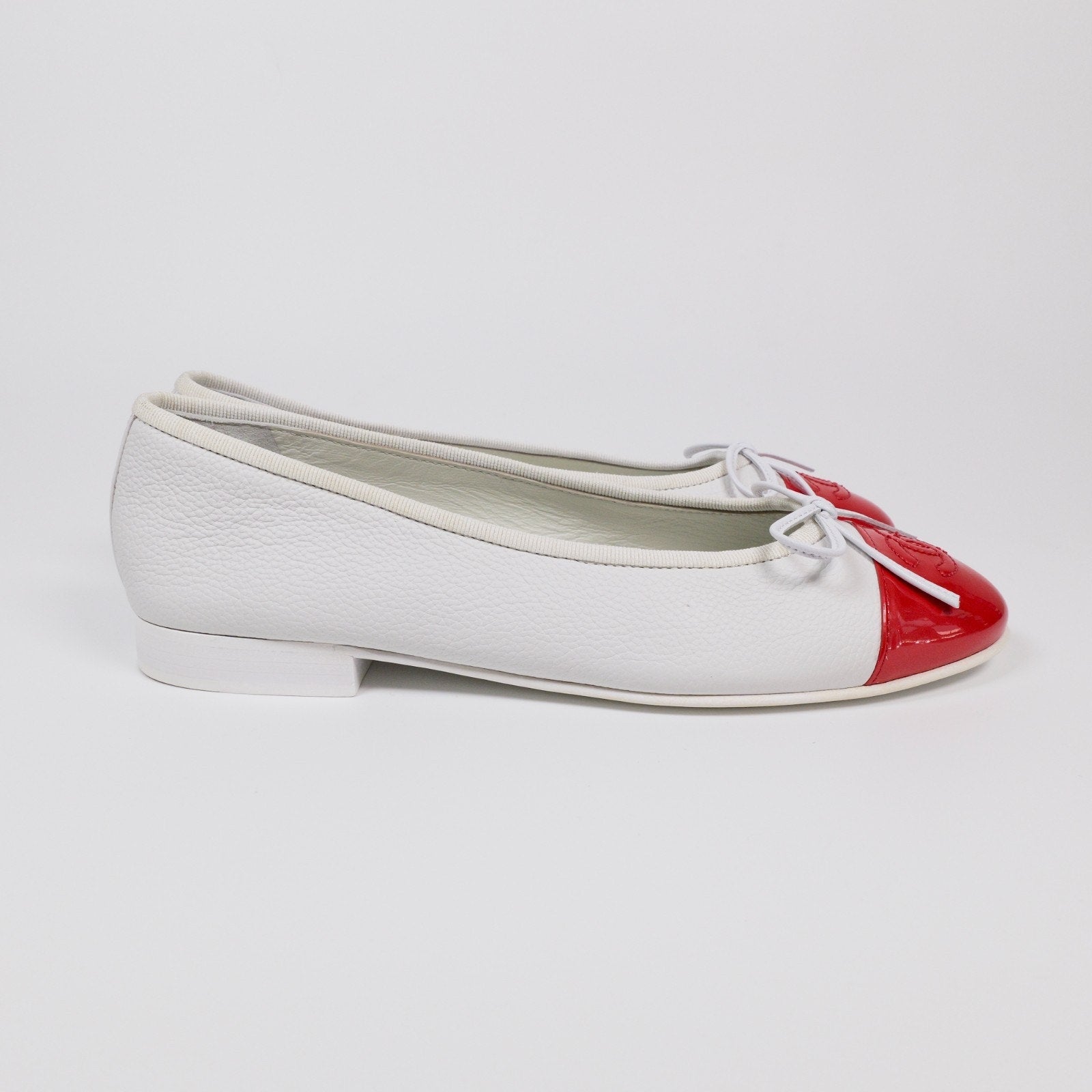 Chanel White Lambskin Red Patent CC Cap Toe Bow Ballet Flats EU 36