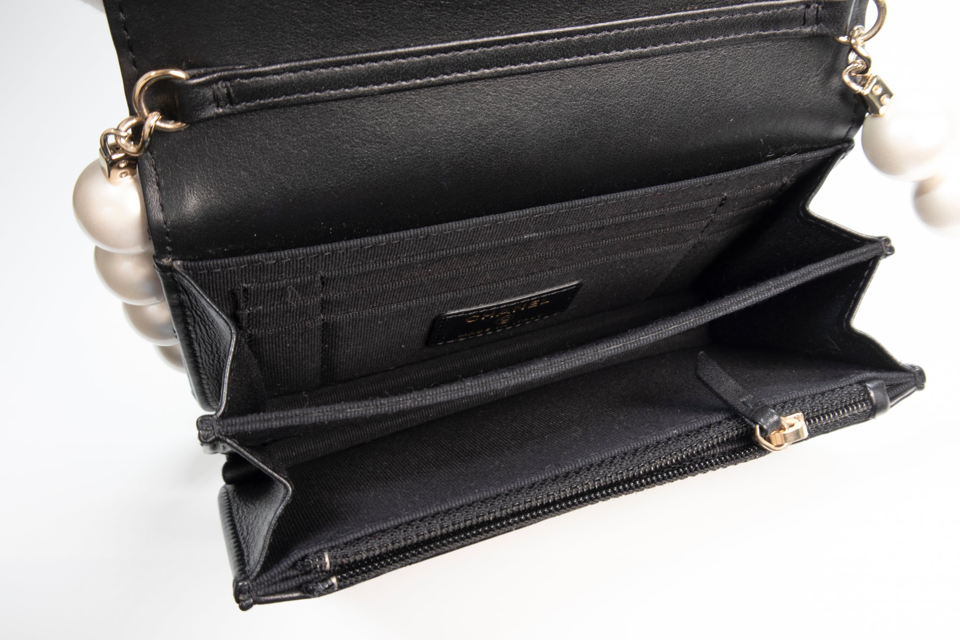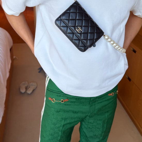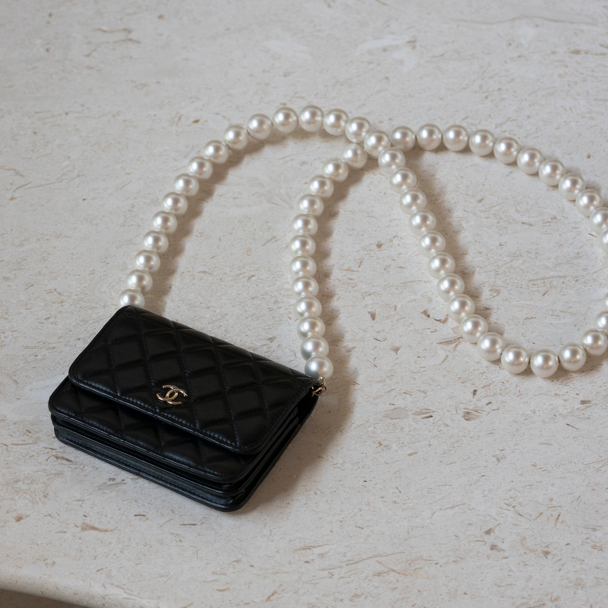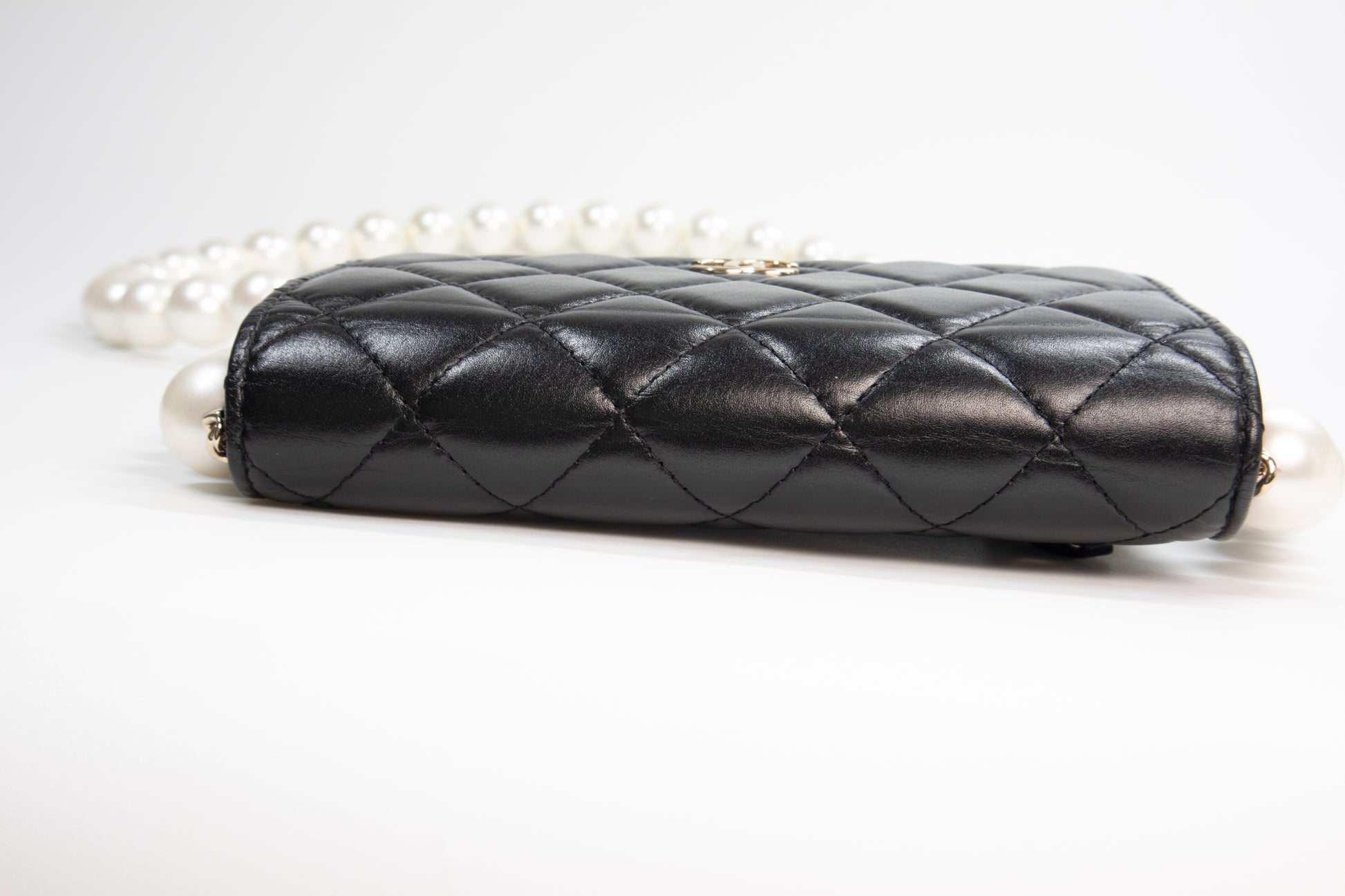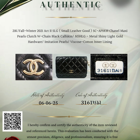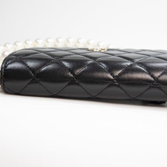 Chanel Black Quilted Calfskin Maxi Pearls Clutch with Chain Light Gold HW SC-AP1839