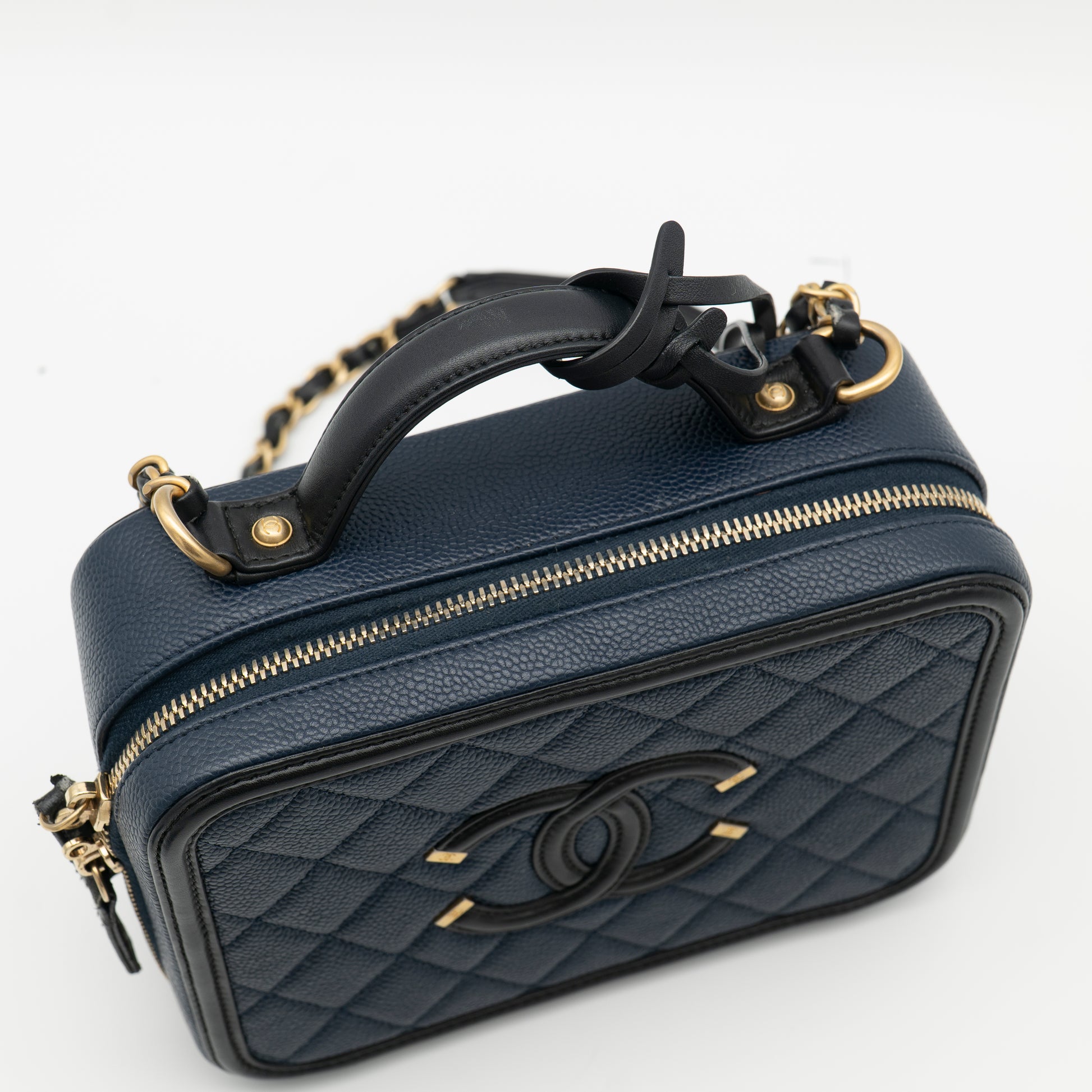 CHANEL Medium Filigree Vanity Case Navy/Black