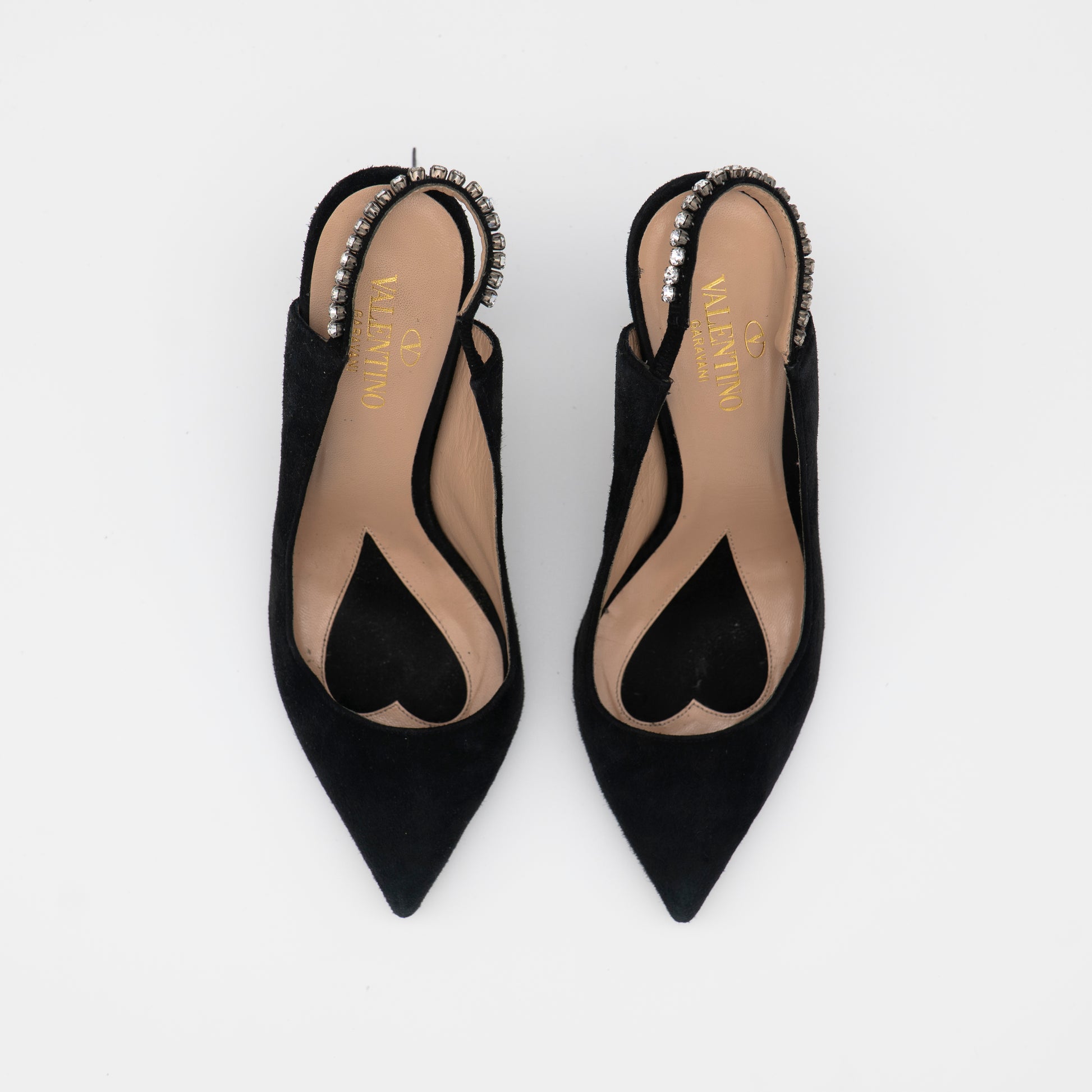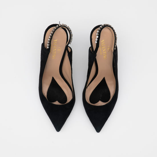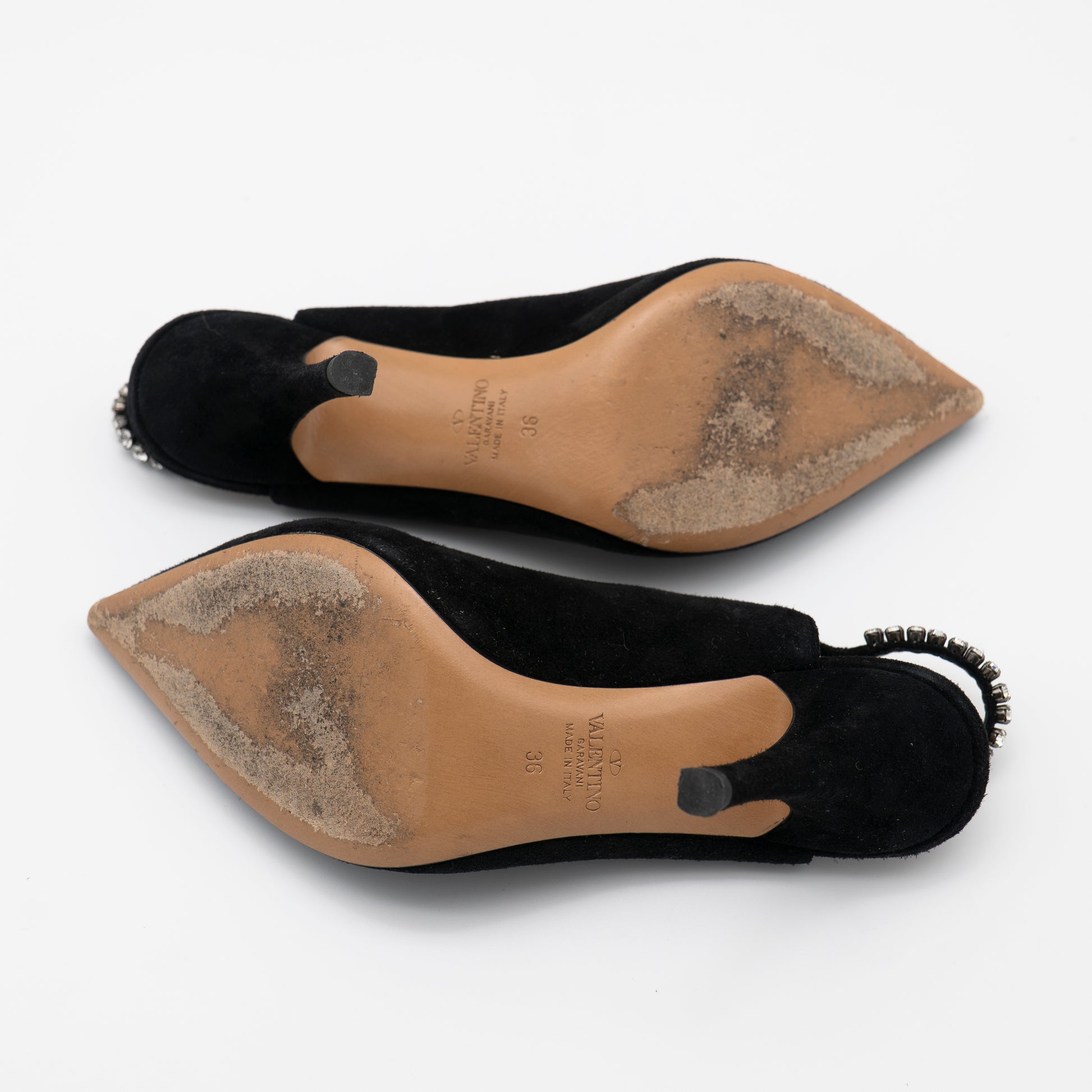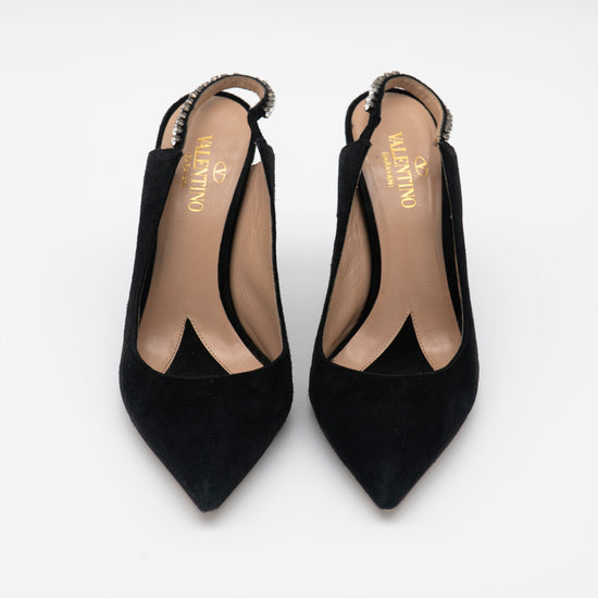 Valentino Garavani Suede Crystal Embellished Slingback Pumps Size 36